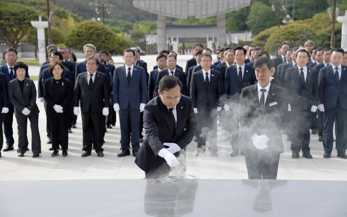 [광주=세계타임즈 손권일 기자] 김동찬 의장을 비롯한 광주광역시의회 의원 일동과 의회사무처 간부 등이 8일 오전 국립5·18민주묘지를 찾아 참배하고 5.18영령들의 넋을 기렸다.