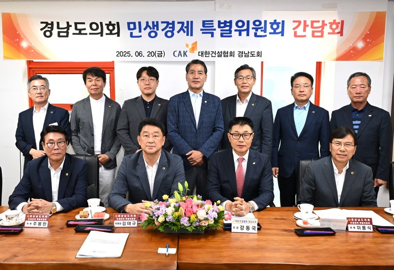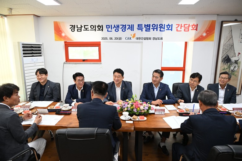 [경남 세계타임즈=최성룡 기자] 경남도의회 민생경제 특별위원회(위원장 김태규, 통영2, 국민의힘)는 지역경제 현장 목소리를 청취하고자, 지난 6월 20일 대한건설협회 경남도회, 상남시장 상인회를 방문하여 집행부로부터 주요 사업추진 사항 등 관련 업무보고를 받고 현장의 애로사항을 청취하는 시간을 가졌다.