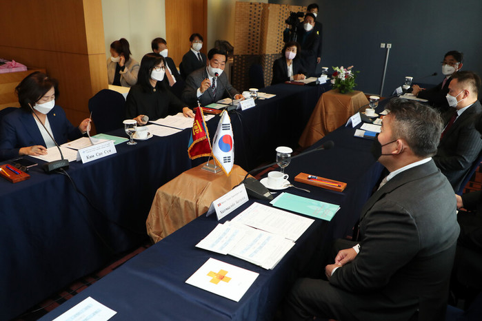 간담회에는 박문희 의장을 비롯한 바톨가 할트마 몽골 前대통령, 부흐바트 마쉬바트 NMC 위원장, 김상순 한국여성경제인협회 충북지회장, 백성일 WMC 사무총장 및 관계 공무원 등 20여명이 참석한 가운데 경제, 문화, 체육 등에 대해 교류하는 시간을 가졌다.