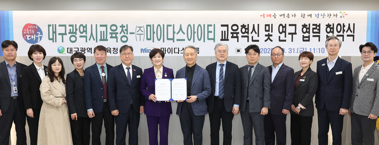 [대구 세계타임즈=한윤석 기자] 대구시교육청은 10월 31일(금) 오전 11시 시교육청 접견실에서 ㈜마이다스아이티와 ‘교육혁신 및 연구 협력을 위한 업무 협약’을 체결했다.