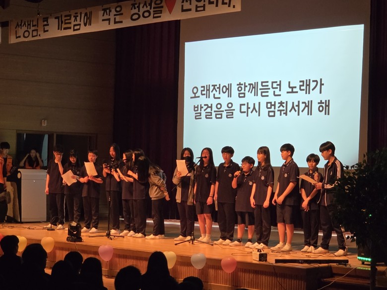 학생자치회 회장 3학년 김고은 학생은“선생님들께 진심을 전하고 싶어 열심히 준비했다”라며, “스스로 계획하고 운영한 만큼 뿌듯하고 뜻깊은 시간이었다”라고 소감을 밝혔다.