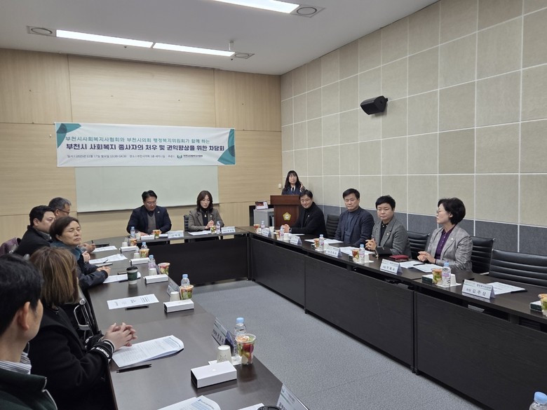 [부천시 세계타임즈=송민수 기자] 부천시의회 행정복지위원회(위원장 곽내경)는 지난 11월 17일 부천시의회 세미나실에서 부천시사회복지사협회와 함께 사회복지 종사자의 처우 및 권익 향상을 주제로 간담회를 개최했다.