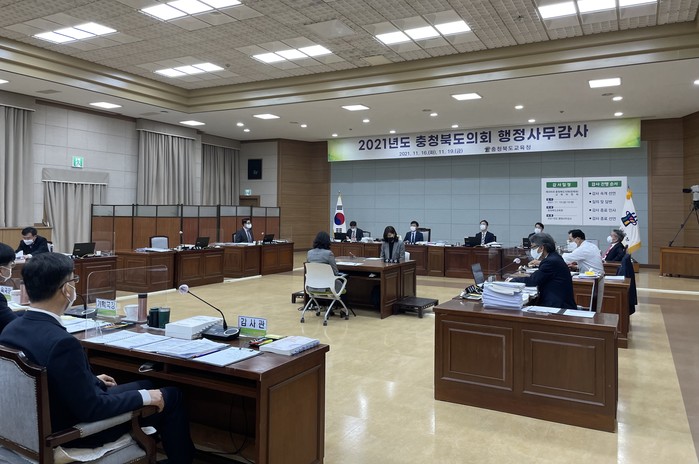 [충북=세계타임즈 이현진 기자] 충북도의회 교육위원회(위원장 박성원)는 19일 충청북도교육청 화합관에서 충청북도교육청을 대상으로 2일차 행정사무감사를 실시했다.