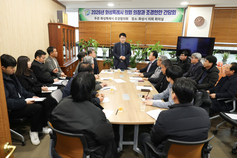 [화성시 세계타임즈=송민수 기자] 화성특례시의회(의장 배정수)는 11일 시의회 의장실에서 화성시 조경협의회와 간담회를 열고 지역 조경업체의 건전한 발전과 공공 계약 참여 확대를 위한 제도 개선 방안을 논의했다.