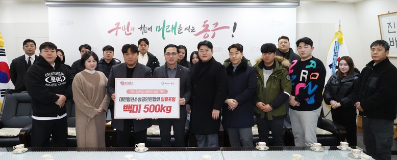 [동구 세계타임즈=이채봉 기자] 대전 동구(구청장 박희조)는 9일 대전청년소상공인연합회 일류포럼(회장 김용환)으로부터 관내 취약계층 지원을 위한 백미 500kg을 기탁받았다고 밝혔다.