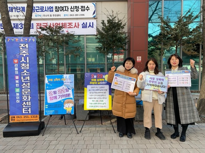 특히 이번 캠페인에는 전주와 군산, 익산, 정읍 등 전북특별자치도내 4개 청소년성문화센터가 함께 참여해 아동 성폭력 근절을 위한 동참을 호소했다.