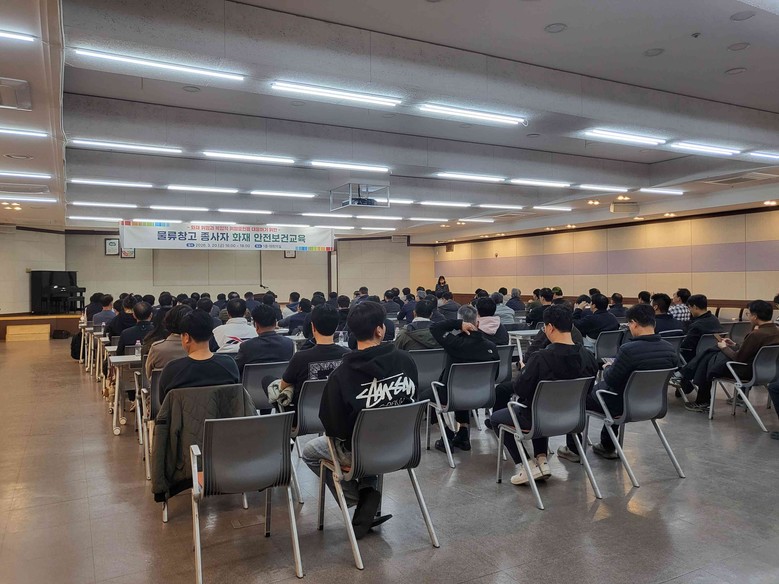 안전보건공단에서 강의를 맡았으며, 주요 교육 내용은 ▲최근 물류창고 화재 사례 분석 ▲화재 예방을 위한 작업장 관리 요령 ▲사업장 사고위험요인 ▲종사자 중심 안전관리 체계 구축 등으로 구성됐다.