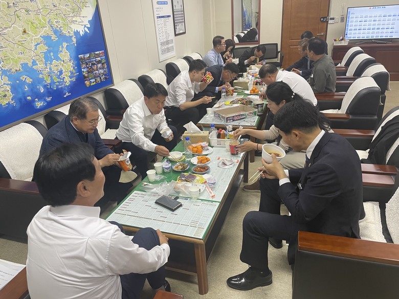 | ▲ 지난 28일 문화복지위원회 정회 후 컵라면으로 끼니를 해결하는 모습 |