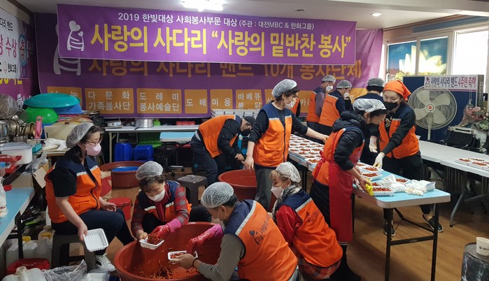 [대전=세계타임즈 이채봉 기자] 6년째 꾸준히 대전시 소외계층을 위해서 다양한 봉사를 펼치고 있는 대전시 봉사단체 사랑의 사다리 밴드(리더 이정제)는 4일 오전9시~오후12시, 3가지 밑반찬을 만들어서 동구, 대덕구 소외계층 70가정에 전달을 하였다.