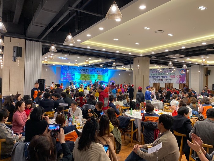 이날 송년회에는 400명의 회원들이 참석하여 축하공연과 노래자랑 그리고 우수자원봉사 시상식을 하였다.