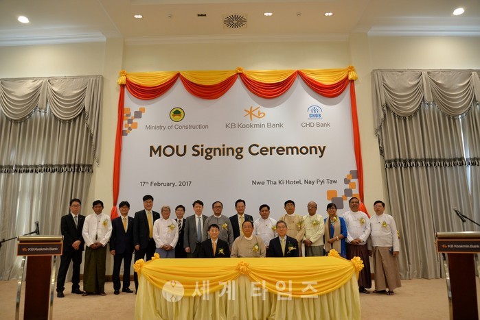 [세계타임즈 김장수 기자] KB금융그룹은 17일 미얀마 행정수도인 네피도에서 미얀마 건설부 및 주택건설개발은행(CHDB)과 KB국민은행 간의 협력체계 구축을 위한 3자간 양해각서(MOU)를 체결했다고 밝혔다.