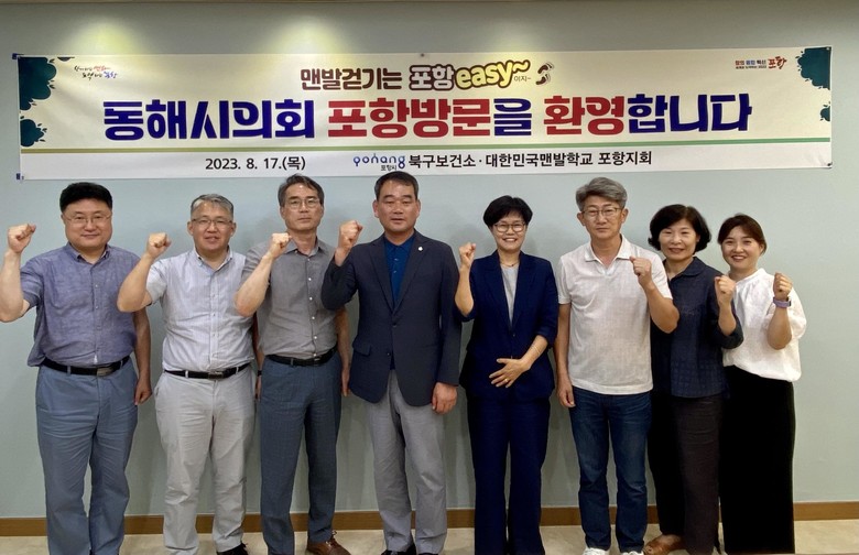 [동해시 세계타임즈=김민석 기자] 동해시의회 최명관 부의장외 3명은 17일(목) 포항시 푸른도시사업단 그린웨이추진과(과장 이경식), 북구 보건소 건강관리과(과장 이재숙), 맨발학교 포항지회(지회장 장기현) 등을 방문해 맨발걷기 우수사례를 벤치마킹 했다.