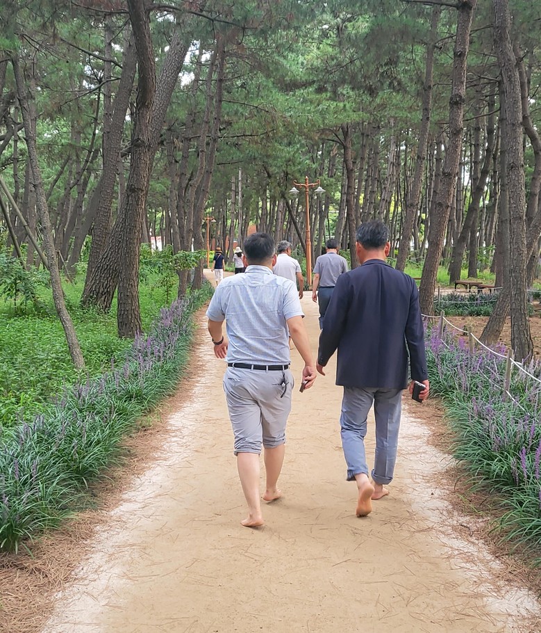아울러, 최명관 부의장은 맨발학교 포항지회가 위치해 있는 포항시 송도 솔밭에서 장기현 맨발학교 포항지회장과 함께 맨발 걷기 체험시간도 가졌다.