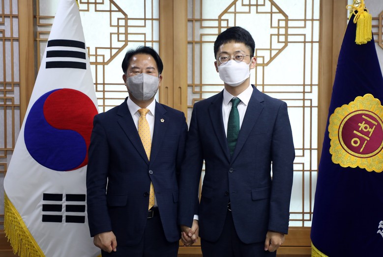 [세종 세계타임즈=이채봉 기자] 세종특별자치시의회 상병헌 의장은 지난 31일 집무실에서 권동철 세종세무서장과 만나 환담을 나눴다.