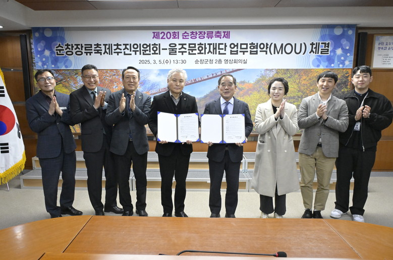 [순창군=세계타임즈 신승민 기자] 순창장류축제추진위원회(위원장 윤영식)와 (재)울주문화재단(대표 이춘근)이 지난 5일 전통문화 교류와 지역축제 활성화를 위한 업무협약(MOU)을 체결했다.