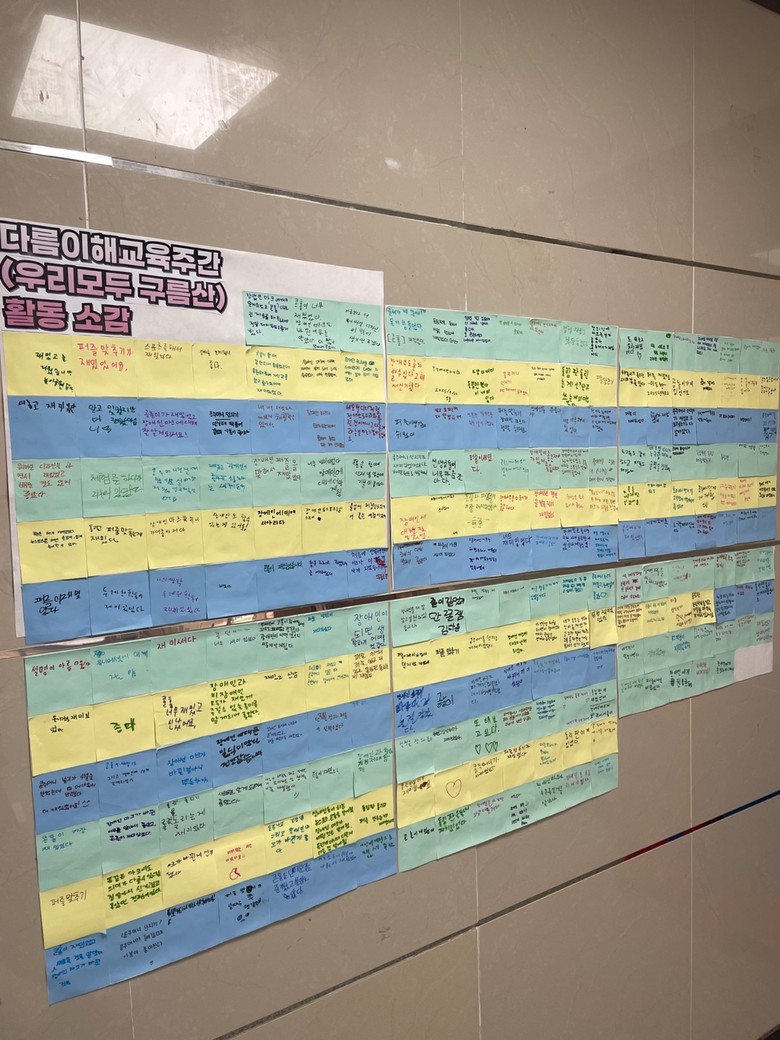 - 3,4학년은 ‘다름이해 벽화 만들기’활동을 통해 함께 어울리는 공동체의 모습을 벽화 글귀로 담아냈다.