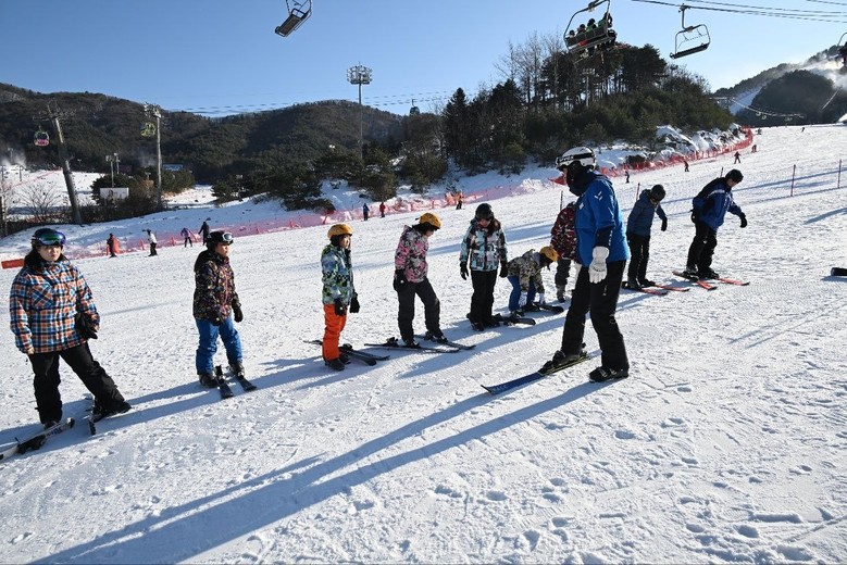 행사장에 도착하여 점심식사 후 전문 스키 강사의 지도로 안전교육과 스키 강습이 이루어졌다. 준비운동을 하고 스키용어와 장비착용법에 관한 설명을 듣고 기본 자세인 ‘안전하게 넘어지기와 일어서는 방법’, ‘스노우플로우(A자세)’ ‘스노우플로우턴’ 자세를 연습한 후 슬로프를 타고 초급자 코스로 이동하여 본격적으로 스키를 탔다.