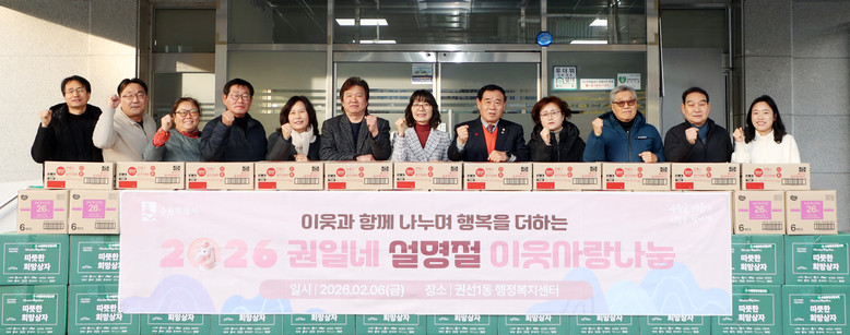 이 자리는 설 명절을 앞두고 지역 내 저소득 가구에 따뜻한 정을 전하기 위해 마련됐으며, 권선1동 단체장과 시·도의원, 주민 등이 함께했다.