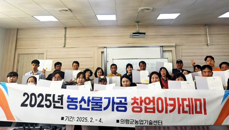 [의령군 세계타임즈=최성룡 기자] 의령군은 지난 30일 농업기술센터 실습교육장에서 수료생 25명이 참석한 가운데 2025년도 농산물가공 창업아카데미 수료식을 가졌다고 밝혔다.