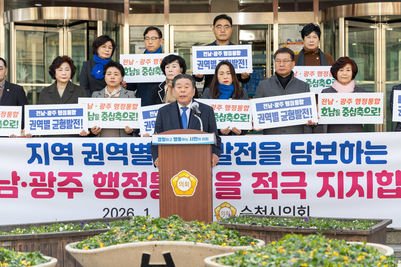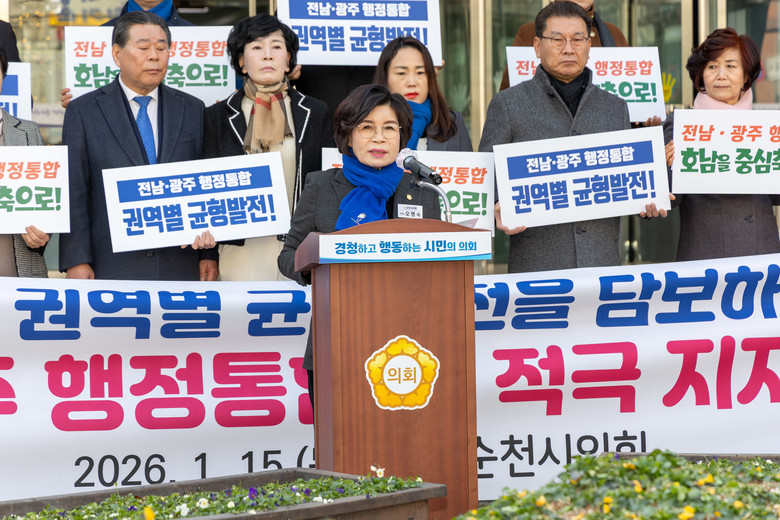 순천시의회는 성명서를 통해 “정부가 제시한 「5극 3특」 국가전략은 더 이상 일부 지역의 성장이 아닌, 모든 지역이 국가 발전의 주체가 되는 구조로 나아가겠다는 시대적 선언이다”며 “급변하는 국가 경쟁 환경과 심화되는 지역 소멸 위기 속에서, 전남과 광주가 하나의 미래 공동체로 도약하기 위해 지역 3대 권역 균형발전을 담보하는 전남·광주 행정통합을 적극 지지한다”고 밝혔다.