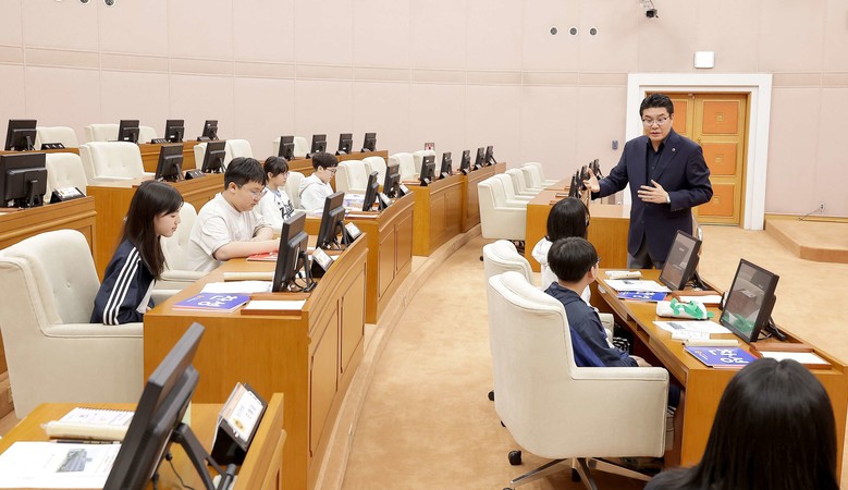 이날 청소년 의회교실은 정명국 의원(동구3, 국민의힘)이 함께 참여해 학생들에게 지방의회의 기능과 역할에 대해 설명하고, 실제 의정 활동이 어떻게 이뤄지는지를 소개했다.