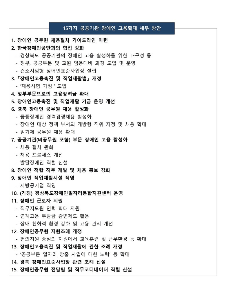 - 15가지 공공기관 장애인 고용 확대를 위한 세부 방안 제시 -