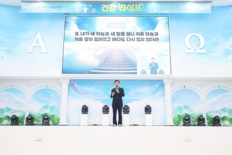 1.. 28일 신천지 전주교회에서 열린 ‘영·혼·육 건강 라이프 말씀세미나’에서 신명근 강사가 강연을 펼치고 있다.