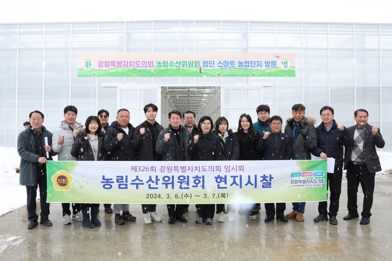 [강원도 세계타임즈=김민석 기자] 강원특별자치도의회 농림수산위원회(위원장 김용복) 위원들은 제 326회 임시회 기간 중 농정·내수면 분야 사업 추진상황 점검을 위해 3. 6. ~ 3. 7. 2일간 원주, 평창지역 현지시찰을 실시하였다.