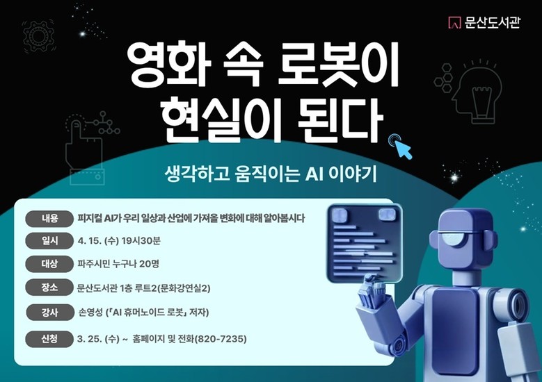 이인숙 문산도서관장은 “빠르게 발전하는 과학기술을 시민들이 쉽게 이해할 수 있도록 돕는 자리”라 말하며, “미래 사회 변화에 관심 있는 시민들에게 의미 있는 시간이 될 것”이라고 전했다.