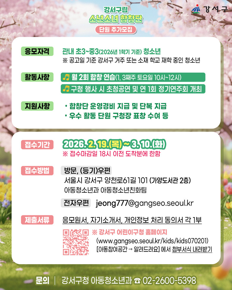 기타 자세한 문의는 강서구 아동청소년과(☎02-2600-5398)로 하면 된다.