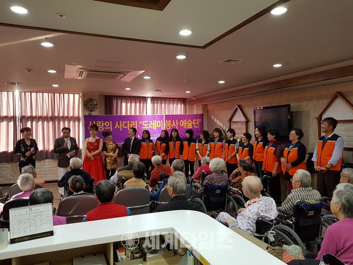 이날 봉사에는 도레미 봉사예술단의 윤문균 운영위원장, 안명주 부단장, 박영순 총무, 김도희, 박석수, 정용, 희야 회원들과 오카리나 고민정 선생님의 수강생인 선창진, 소명화, 유진경, 조연풍 회원들이 함께 하면서 난타, 가요, 장수춤, 오카리나로 흥겨운 위문공연 봉사를 하였다