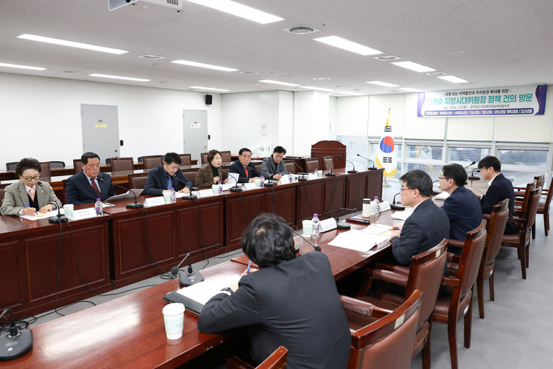 [경기도 세계타임즈=송민수 기자] 경기도시·군의회의장남부권협의회(회장 유진선 용인특례시의회 의장)는 12일 세종특별자치시 지방시대위원회 대회의실에서 김경수 지방시대위원회 위원장과 면담을 갖고, 지방의회 인사권 독립 이후에도 조직‧예산 편성권과 자체 조사‧감사 권한이 여전히 집행부에 구조적으로 종속돼 있는 현실을 공유하며, 이러한 제도적 한계에 따른 입법 미비를 보완하기 위한 정책 개선 방안을 공식 건의했다.