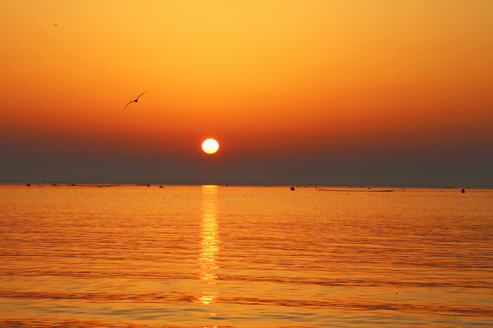 요즘 제철을 맞은 실치의 고장으로 유명한 당진시 석문면 장고항의 서해 일출이 아름다운 장관을 이루고 있다.
