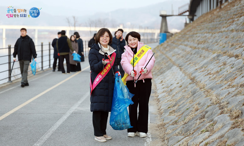 [양평군 세계타임즈=송민수 기자] 양평군의회(의장 오혜자)는 5일 양평읍 양근리 일대에서 열린 ‘2026년 우리동네 새단장 캠페인’에 참여해 봄맞이 환경 정화 활동을 펼쳤다.
