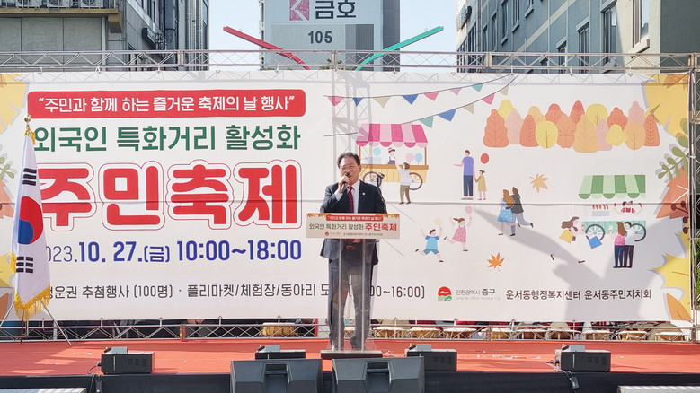 [중구 세계타임즈=심하린 기자] 인천 중구의회는 지난 27일 운서동 외국인 특화거리에서 개최된 ‘외국인 특화거리 활성화 주민축제’에 참석하여 주민과 소통하는 시간을 가졌다.