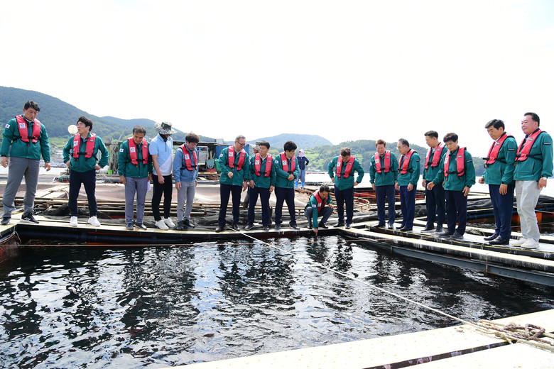 고수온 피해현장 점검에는 최학범 의장, 유계현·박인 부의장, 정규헌 의회운영위원장, 백태현 기획행정위원장, 이찬호 교육위원장, 허동원 경제환경위원장, 서희봉 건설소방위원장, 박주언 문화복지위원장, 최영호 국민의힘 대표의원, 이장우 수석부위원장, 강성중.김태규 통영시 지역구 의원 등이 참석하였다.