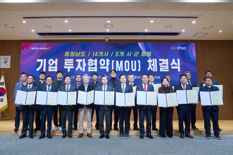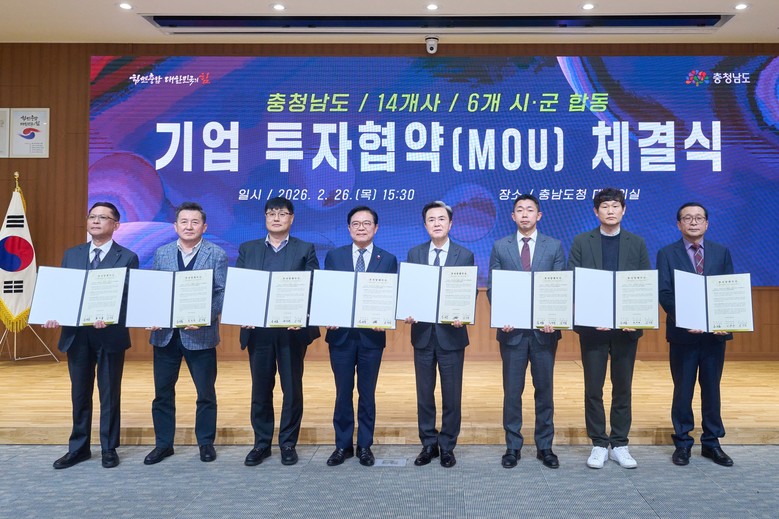 시는 26일 충남도청에서 △㈜성창오토텍 △하이쎄미코㈜ △㈜아라 △ ㈜햇살식품 △㈜오투바이오 △㈜영풍유통 6개 기업과 투자협약을 체결했다.