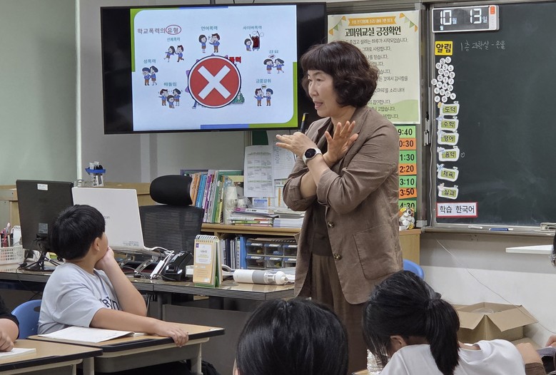 강의는 광주 청소년폭력예방재단 김경숙 소장 등 39명이 맡아 ▲학교폭력 및 사이버폭력의 유형과 대응법 ▲건강한 의사소통과 갈등 해결 방법 ▲존중과 배려의 공동체 문화 조성 등을 주제로 수업을 진행했다.