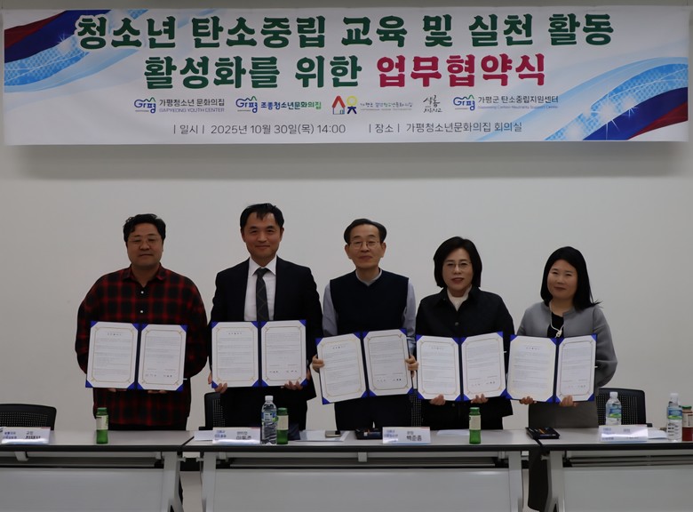이번 협약은 지역 내 청소년 중심의 기후환경 실천활동을 활성화하고, 기관 간 협력 네트워크를 구축해 ‘탄소중립 선도도시 가평’ 실현을 위해 추진됐다.