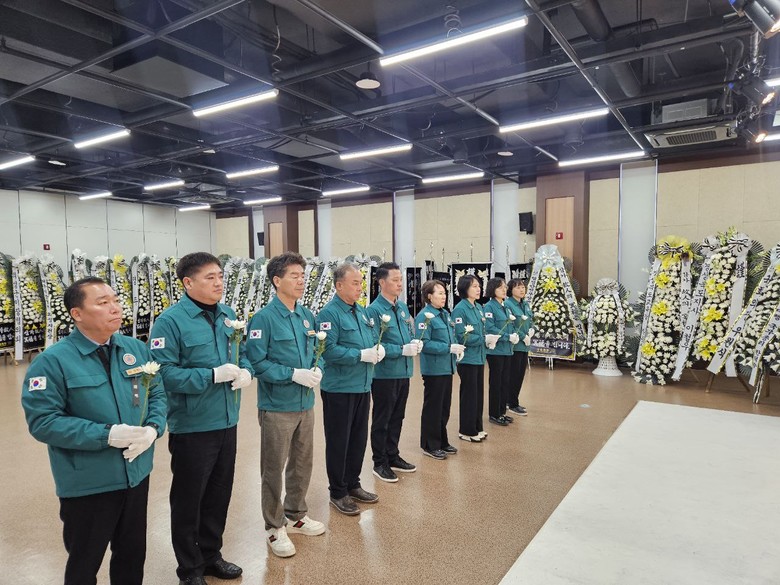 [예천군 세계타임즈=한윤석 기자] 예천군의회(의장 강영구) 의원 일동은 28일, 의성군 청소년 문화의 집 다목적 강당에 마련된 산불 진화 희생자 합동분향소를 찾아 산불 진화 작업 중 헬기 추락으로 순직한 故 박현우 기장과 산불 희생자들을 추모했다.