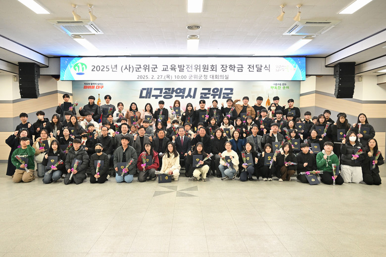 [군위군 세계타임즈=한윤석 기자] (사)군위군교육발전위원회는 지난 27일 군위군청 대회의실에 학부모, 장학생, 교육발전위원회 임원 등 200여명이 참석한 가운데 2025년 장학금 전달식을 개최했다.