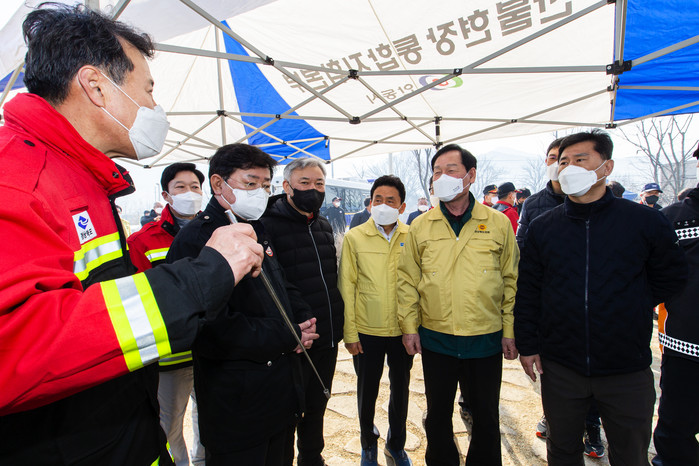 [경북=세계타임즈 한성국 기자] 고우현 경상북도의회 의장은 22일(월) 안동시 임동면 수곡리에 마련된 산불현장 지휘본부를 방문하여 주민의 피해상황을 보고 받고, 진화 활동중인 공무원들을 격려했다.