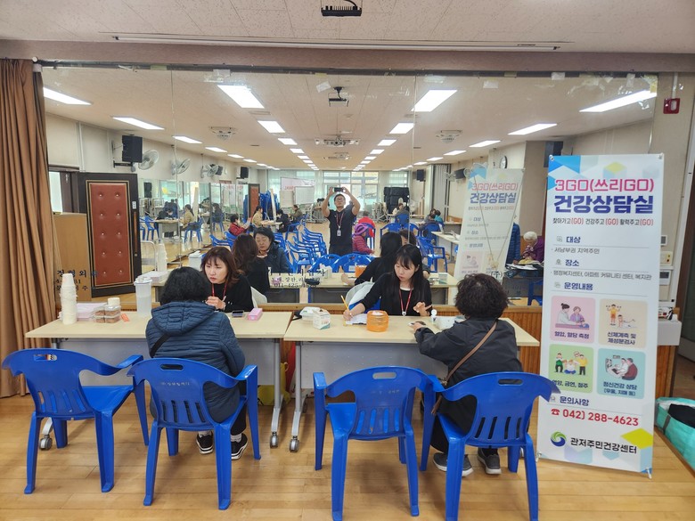 [서구 세계타임즈=이채봉 기자] 대전 서구 관저주민건강센터는 생활터를 직접 방문해 밀착형 건강관리 서비스를 제공하는 ‘쓰리 GO 찾아가는 건강상담실’을 운영한다고 19일 밝혔다.