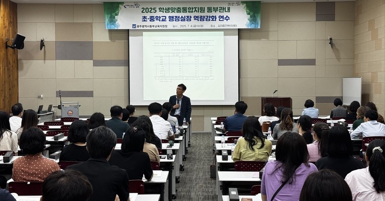 [광주 세계타임즈=손권일 기자] 광주동부교육지원청은 4일 김대중컨벤션센터에서 관내 초·중학교 행정실장 등 100여 명을 대상으로 ‘학생맞춤통합지원사업 연수’를 진행했다.