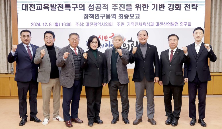 대전시의회 의원연구회인 「지역인재육성과 대전산업발전 연구회」(회장 박주화 의원)는 9일 시의회 소통실에서 ‘대전교육발전특구의 성공적 추진을 위한 기반 강화 전략 연구’ 용역에 대한 최종보고회를 개최하고 의견을 수렴했다.