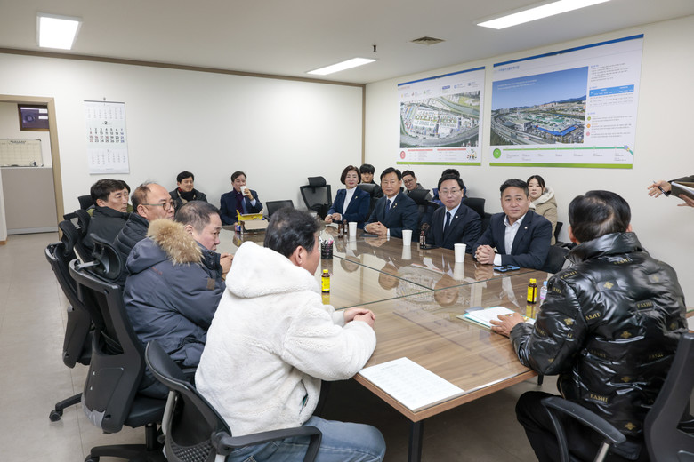 [구리시 세계타임즈=송민수 기자] 구리시의회(의장 신동화)는 2월 3일 11시 구리농수산물도매시장 중도매법인연합회 사무실에서 구리농수산물시장 중도매법인조합연합회(연합회장 정병찬)와 간담회를 개최하였다. 이날 간담회에는 신동화 의장, 김성태 부의장, 정은철 운영위원장, 권봉수 의원, 양경애 의원과 중도매조합 회원 등 15여 명이 참석했다.