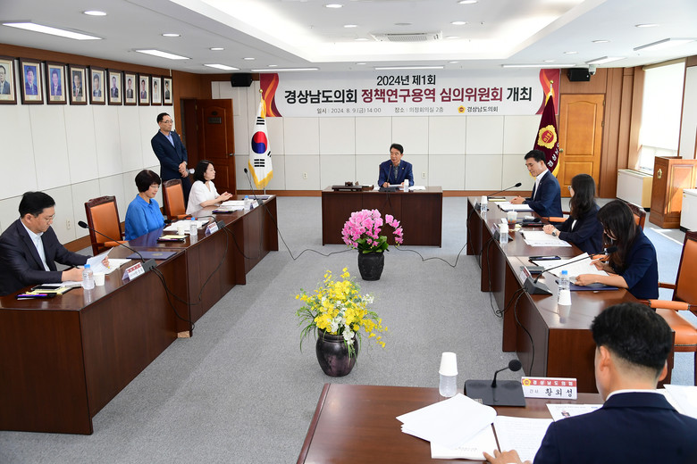 [경남 세계타임즈=최성룡 기자] 경상남도의회는 9일 경상남도의회 의장 집무실에서 9명의 정책연구용역 심위위원회 위원을 위촉하였다. 이번 심의위원회는 총 9명으로 구성되어 있으며, 이 중에는 의회 운영위원회 소속 의원 4명과 풍부한 경험과 식견을 지닌 외부전문가 5명이 포함되어 있다. 외부전문가들은 교수 3명과 연구원 2명으로 구성되었다.