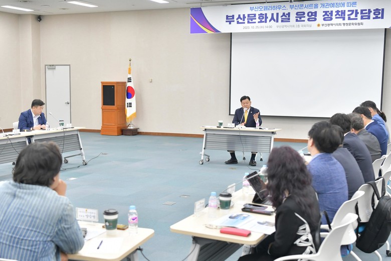 [부산 세계타임즈=이용우 기자] 지난 25일 부산시의회 대회의실에서 부산시의회 행정문화위원회 강철호의원(행정문화위원회·동구1) 주재로 「부산광역시 문화시설 운영 방안」에 대한 간담회를 개최하였다.