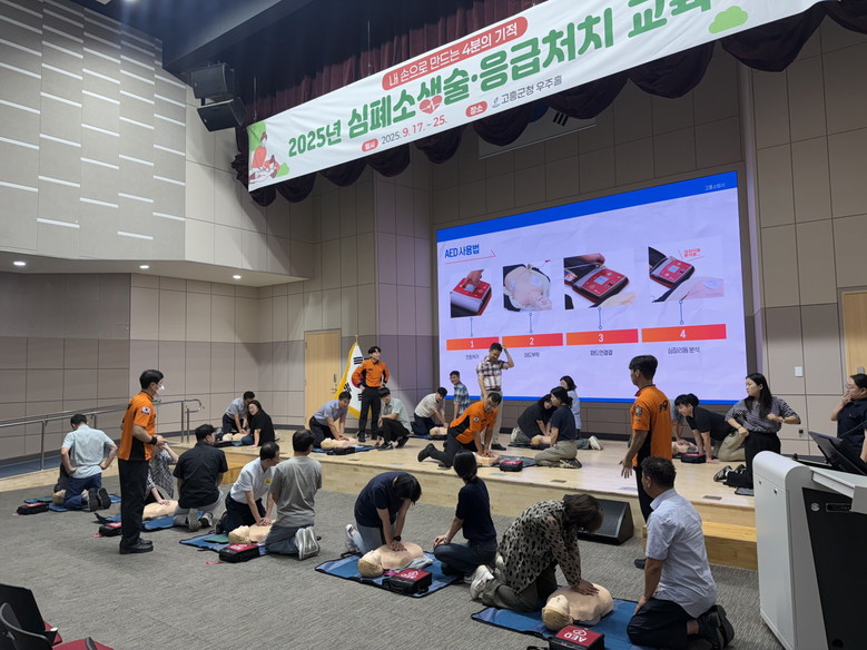군 재난안전과 관계자는 “응급환자 발생 시 최초 목격자(일반인)가 4분 이내 심폐소생술을 시행하면 생존율이 2~3배 이상 향상된다”며 “앞으로도 심폐소생술과 응급처치에 대한 지속적인 교육과 홍보를 통해 군민의 생명 보호와 안전사고 예방을 위해 최선을 다하겠다”고 말했다.