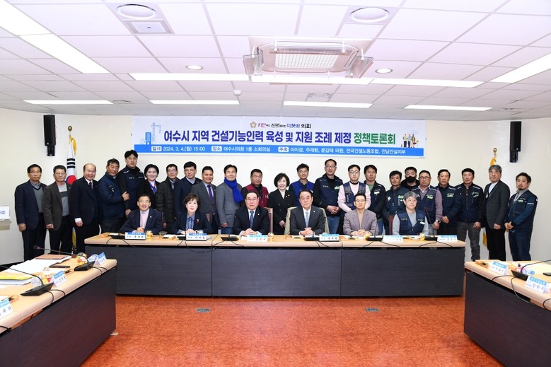 지난 3월 4일, 여수시의회(의장 김영규) 소회의실에서 열린 ‘여수시 지역 건설기능인력 육성 및 지원조례를 위한 정책토론회’에서 주제발제자들은 “건설 숙련인력의 육성체계 구축은 품질·안전·생산성·지역경제를 위한 초석이자 지속가능한 인프라(기반)”라며 이 같이 주장했다.
